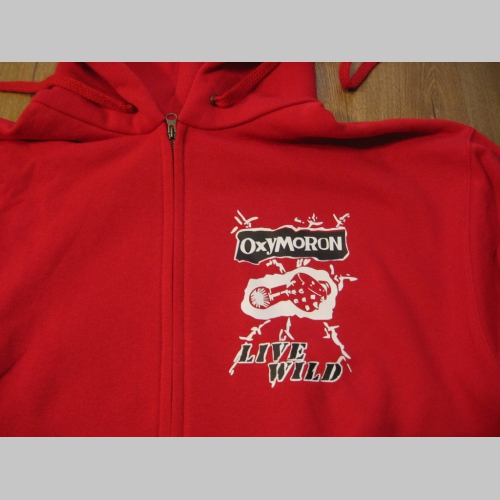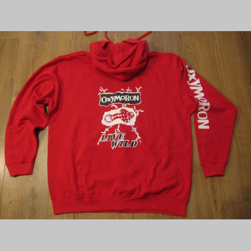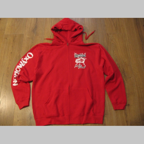 80%bavlna 20%polyester, menšie logo vpredu na srdcovej strane, veľké logo na chrbáte, nápis na rukáve, vpredu dve klokankové vrecká, na koncoch rukávov a naspodu mikiny pevný pružný úplet, pevný kovový zips