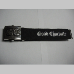 Good Charlotte, hrubý čierny bavlnený opasok s vyšívaným logom kapely. Kovová posuvná pracka s vyrazeným logom. Univerzálna nastaviteľná veľkosť