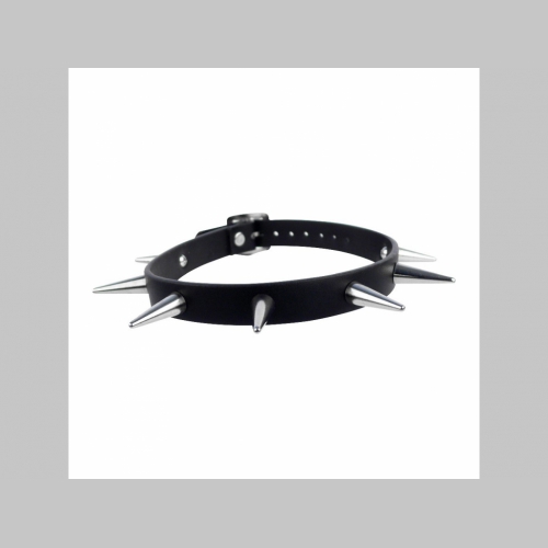 kožený " obojok " na krk vybíjaný dlhými kovovými špicmi, nastaviteľná veľkosť, zapínanie na kovovú pracku