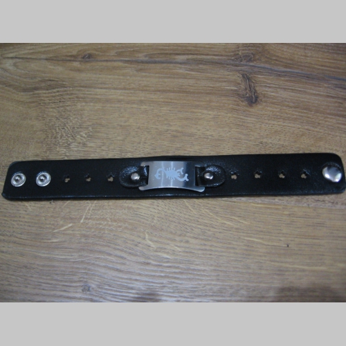 > čierny náramok so zapínaním na cvok s kovovou nadstavbou " ŠKORPIÓN " materiál syntetická koža