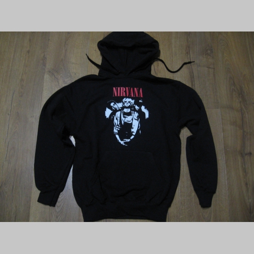 Nirvana čierna mikina s kapucou stiahnutelnou šnúrkami a klokankovým vreckom vpredu