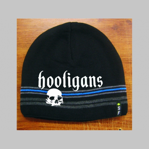> Hooligans čierna pletená čiapka stredne hrubá vo vnútri naviac zateplená, univerzálna veľkosť, materiálové zloženie 100% akryl