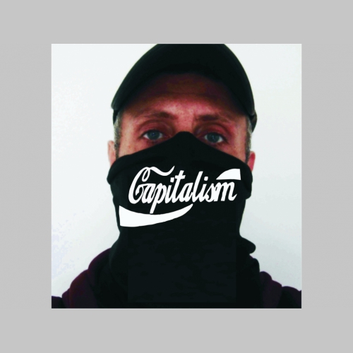 Capitalism čierna univerzálna elastická multifunkčná šatka vhodná na prekritie úst a nosa aj na turistiku pre chladenie krku v horúcom počasí