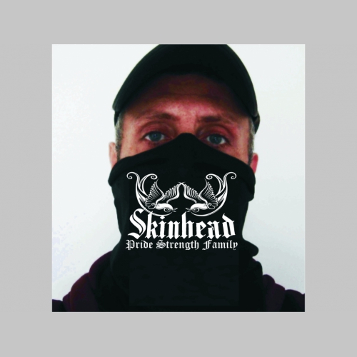 Skinhead Pride Strength Family čierna univerzálna elastická multifunkčná šatka vhodná na prekritie úst a nosa aj na turistiku pre chladenie krku v horúcom počasí