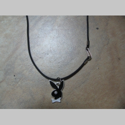 Playboy kovový chrómovaný prívesok na krk na plastikovej šnúrke s kovovým zapínaním