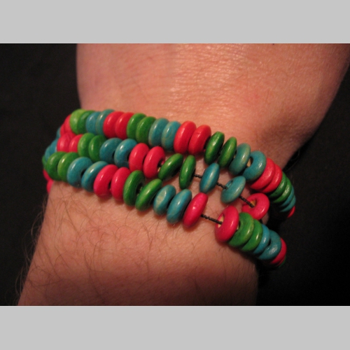 náhrdelník alebo náramok na gumičke s drevenými farebnými korálkami