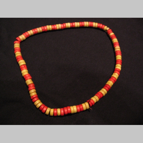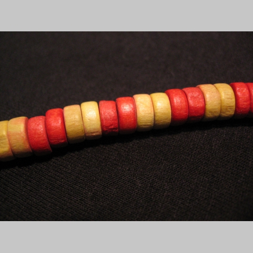 > náhrdelník alebo náramok na gumičke s drevenými farebnými korálkami