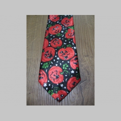 čierno-oranžová kravata so vzorom Halloween - tekvice šachovnica - maximálna šírka 8cm minimálna šírka 3cm materiál 100% hodváb
