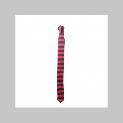 > kravata v štýle " Green Day " červenočierna pruhovaná tenšia s rozmermy 70x3,8cm materiál 100%polyester