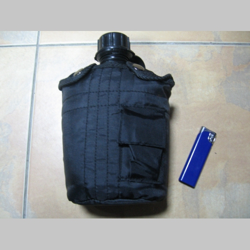 Vojenská fľaša umelohmotná, poľná s púzdrom, čierna, objem cca. 1Liter