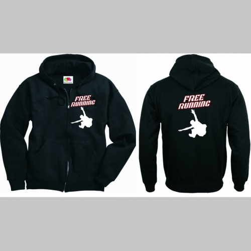 Free Running hrubá mikina na zips s kapucou stiahnuteľnou šnúrkami