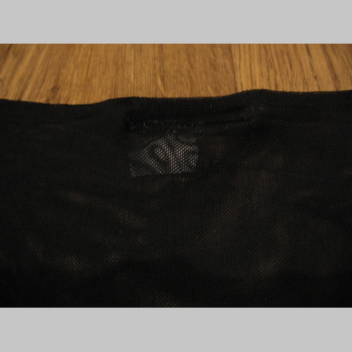 > " Kohútia stopa " čierne dámske tričko bez rukávov s priehladne čiernym vrškom a vybíjaným golierom, materiál 94% polyester 6% elastan, posledný kus veľkosť S/M