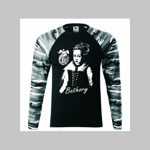 > Elizabeth Bathory - Alžbeta Bátoriová pánske tričko (nie mikina!!) s dlhými rukávmi vo farbe " metro " čiernobiely maskáč gramáž 160 g/m2 materiál 100%bavlna