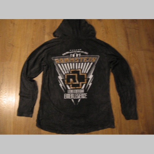 Rammstein čirne pánske tričko s dlhým rukávom a kapucňou v pranom štýle " vintage " s potlačou iba na chrbtovej strane, materiál 100%bavlna posledný kus veľkosť L