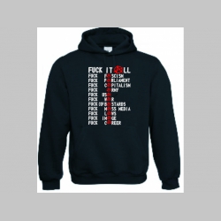 FUCK IT ALL! mikina s kapucou stiahnutelnou šnúrkami a klokankovým vreckom vpredu , farba loga červené s bielym olemovaním