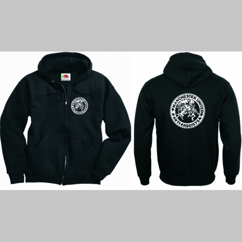 Manchester United Antifascist čierna hrubá mikina na zips s kapucou stiahnuteľnou šnúrkami