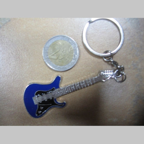 > Gitara modrá, chrómovaná kovová kľúčenka