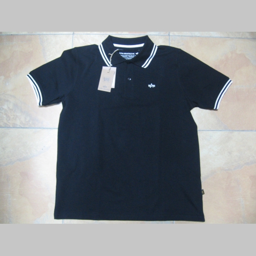 Alpha industries, čierna pánska polokošeľa s vyšívaným bielym logom 100%bavlna