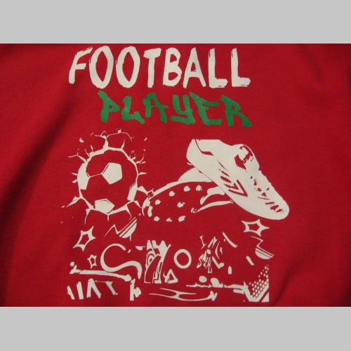 pružné patenty na koncoch rukávov a naspodu mikiny , značka Fruit of The Loom, 80%bavlna 20%polyester futbal fotbalový motív