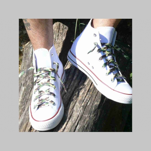 > maskáčové tenšie šnúrky s motívom woodland, ploché šnúrky do topánok dĺžka 114cm šírka 1cm materiál:100%polyester
