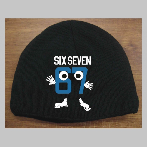 > Six Seven 67 čierna pletená čiapka stredne hrubá vo vnútri naviac zateplená, univerzálna veľkosť, materiálové zloženie 100% akryl