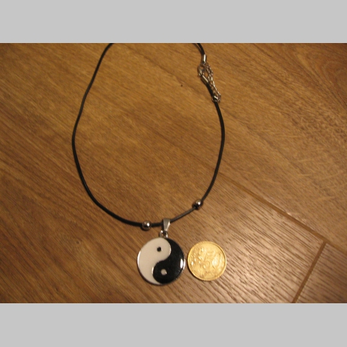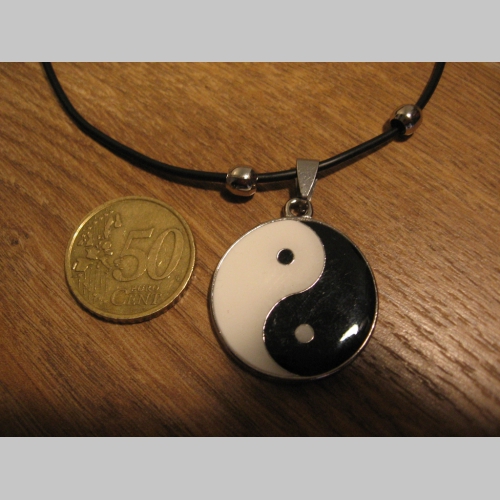 > Jin Jang - Yin Yang kovový chrómovaný prívesok na krk na plastikovej šnúrke s kovovým zapínaním