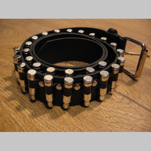 > Vybíjaný čierny opasok s akrylovou imitáciou nábojov materiál syntetická koža , šírka 3,8cm rôzne dĺžky na výber, konečne opäť skladom!!