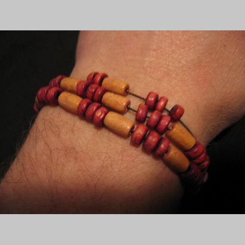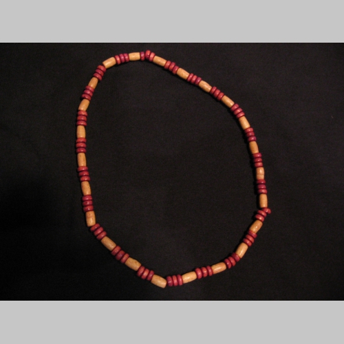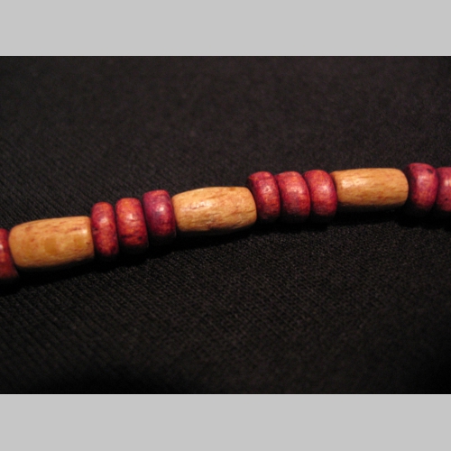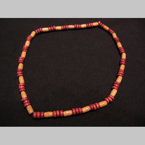 > náhrdelník alebo náramok na gumičke s drevenými farebnými korálkami