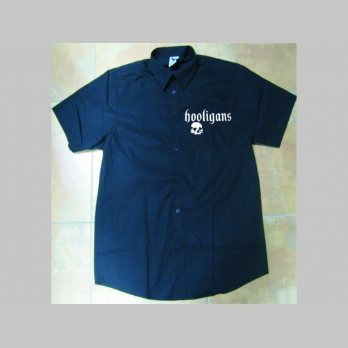 Hooligans čierna košela s krátkym rukávom so zapínaním na gombíky zhora dole, materiál 100%bavlna otvorené vrecko na hrudi