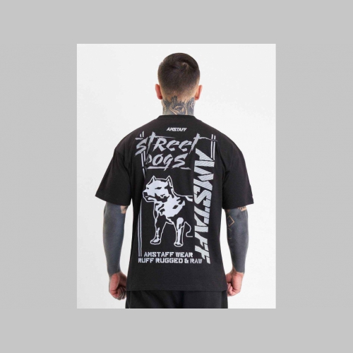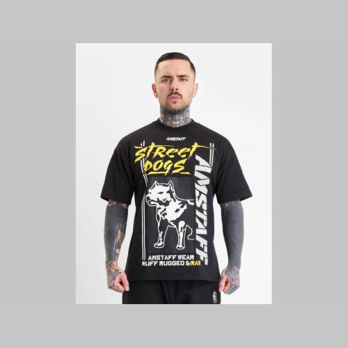 Čierne tričko Amstaff je výrazným doplnkom s výraznou potlačou loga značky na prednej aj zadnej strane.